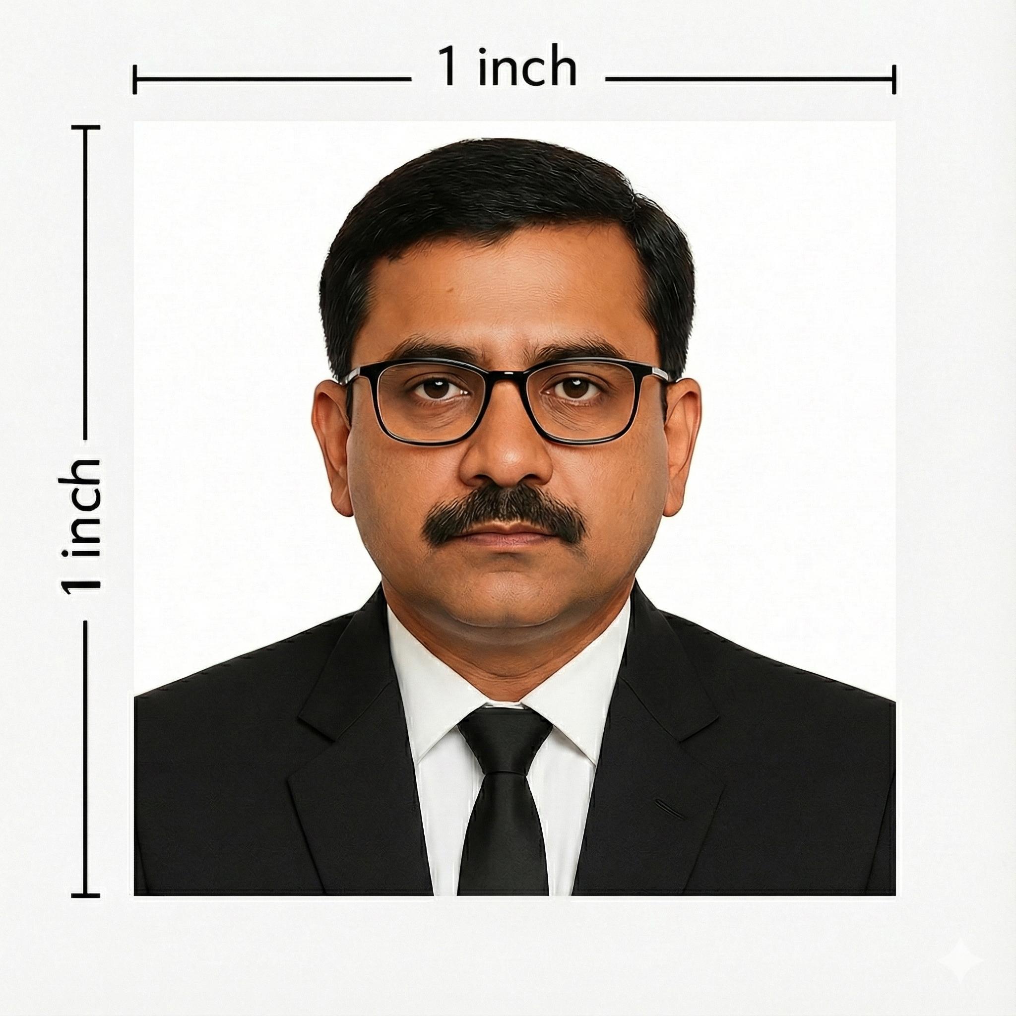 Please upload your image in advocate dress on a white background, stamp size (1 inch by 1 inch).